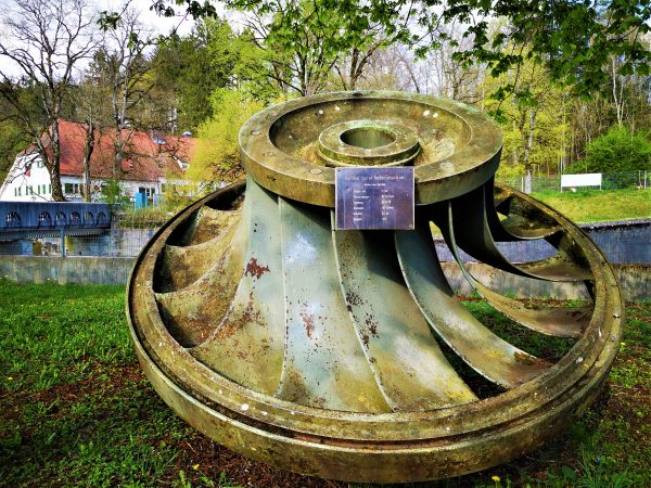 Ein altes Turbinenlaufrad des Wasserkraftwerks Mühltal.
