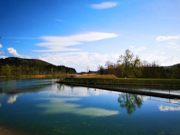 Am Mühltalkanal verlaufen Wander- und Radwege. Infotafeln erzählen die Geschichte der Wasserkraft.