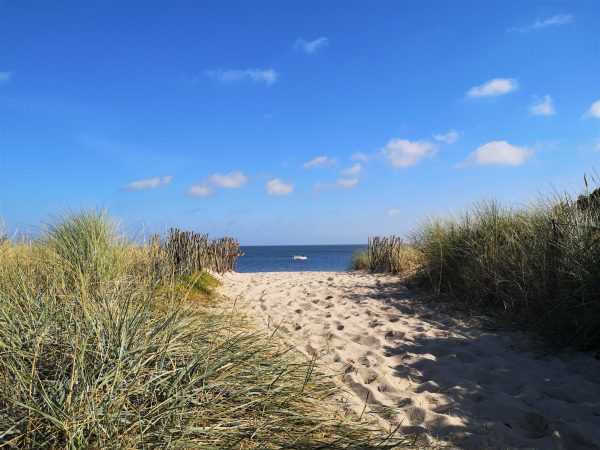 An der Sylter Ostküste zwischen Kampen und Braderup liegt die Braderuper Heide. In dem fast 140 Hektar großen Naturschutzgebiet fühlen sich zum Beispiel Erika, Englischer Ginster, Lungenenzian und Knabenkraut wohl. Und natürlich viele Vögel, wie vielerorts auf Sylt. Die Braderuper Heide bietet Weitblick über Heideflächen und Wattenmeer. Wunderschön für eine Tour mit Hund. Wir starten am Campingplatz Wenningstedt, wandern einmal quer über die Insel, durch die Heide und weiter am Strand bis Munkmarsch. Alternativ kann man die Tour auch direkt an der Heide starten, zum Beispiel vom Wanderparkplatz am M.-T.-Buchholz-Stich.