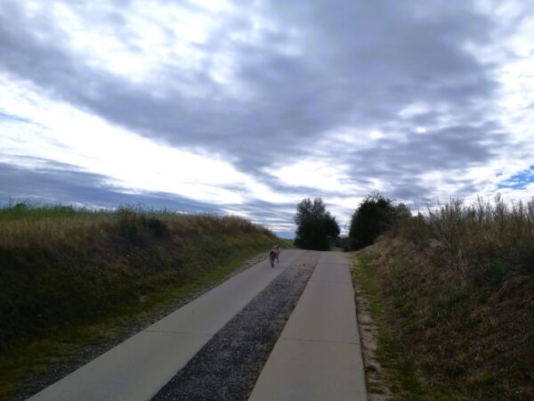 Auf der Lindenallee ist nur Anliegerverkehr unterwegs. Rechts und links gibt`s ausreichend Grün zum Schnuppern und Rennen.
