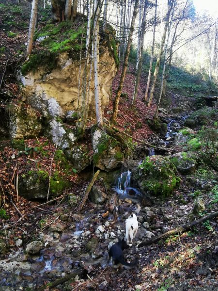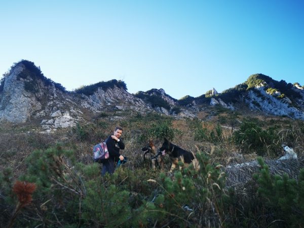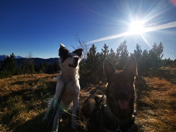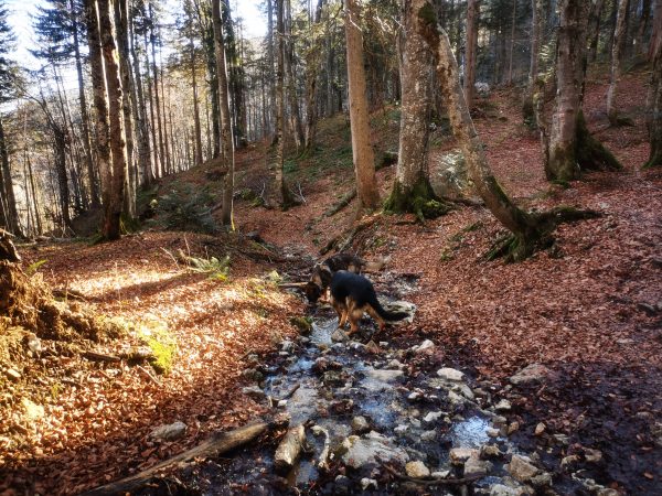 Unterwegs finden die Hunde erst mal viel Wasser, ab 300 m unterhalb des Gipfels wird es aber sehr trocken.