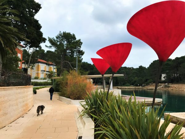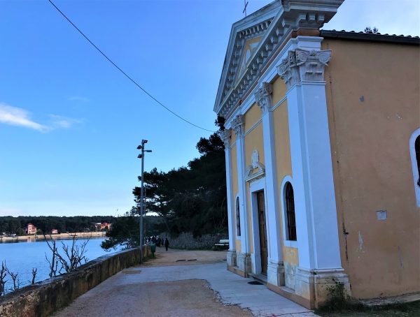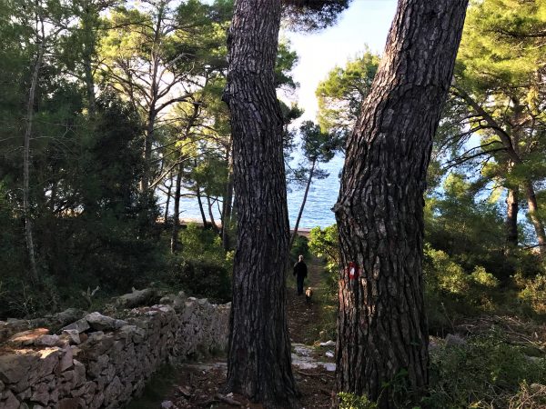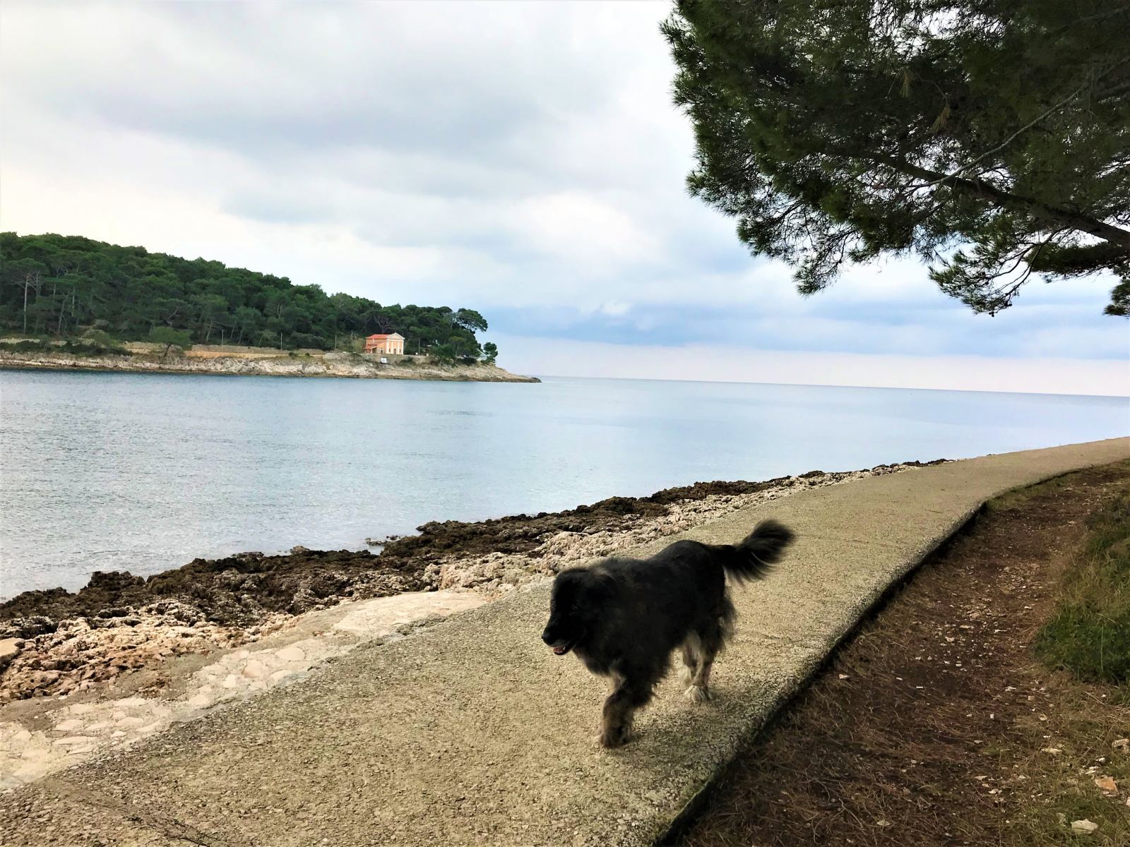 Diese kleine Tour führt uns vom Campingplatz Cikat um das Kap Anuncijat mit seiner rosafarbenen Kirche Mariä Verkündigung. Sie wurde 1858 für die Seeleute und deren Familien gebaut. Im Winter, wenn die luxuriösen Hotels entlang des Küstenwegs geschlossen sind, begegnen uns hier nur wenige Spaziergänger. Mehr Informationen zum Urlaub mit Hund auf Losinj findest du hier
