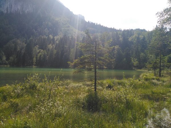 Schöne Rundtour um den Frillensee. Startpunkt ist der Wanderparkplatz am Forsthaus Adlgaß. Dieser liegt schon über 700m hoch, so dass beim Aufstieg zum Frillensee nur ca. 200 Höhenmeter überwunden werden müssen. Nach dem kurzen Anstieg geht es rund um den Frillensee, der angeblich der kälteste See Deutschlands ist. Es besteht die Möglichkeit über den Walderlebnispfad, entlang des Frillenseebachs, zum Forsthaus zurückzukehren. Dies ist vor allem für Familien interessant. Vom Ruheplatz aus geht der Blick sowohl auf den Zwiesel als auch auf den Staufen. Am ist Ende der Tour bietet sich das Forsthaus zur Einkehr an.