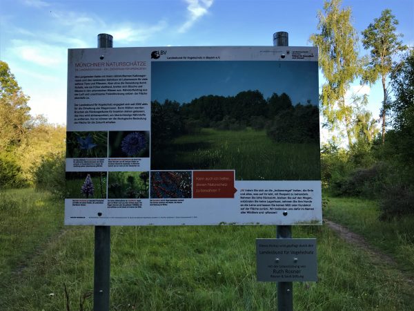 Im Norden Münchens, ausgerechnet zwischen Autobahn, Wertstoffhof, S-Bahn-Trasse und großer Brauerei, liegt ein besonderes Fleckchen Natur: die Langwieder Haide. Das große Kalkmagerrasengebiet zählt laut Experten zu den faunistisch und floristisch wertvollsten Münchner Magerrasen. Das Gelände steht unter besonderem Schutz. Wer hinschaut, versteht auch warum. Schmetterlinge flattern um Wildblumen und Gräser, Echsen rascheln vorbei,  Feldhasen ducken sich in baumbestandene Rinnen. Unsere Tour führt um die Haide (tatsächlich mit „ai“) herum und schließlich – vorschriftsgemäß mit dem Hund an der Leine – mitten hindurch.  Besonders schön in Frühling und Sommer, wenn es blüht und flattert.