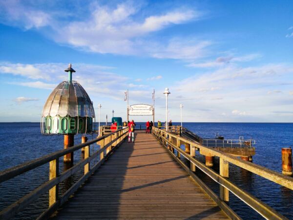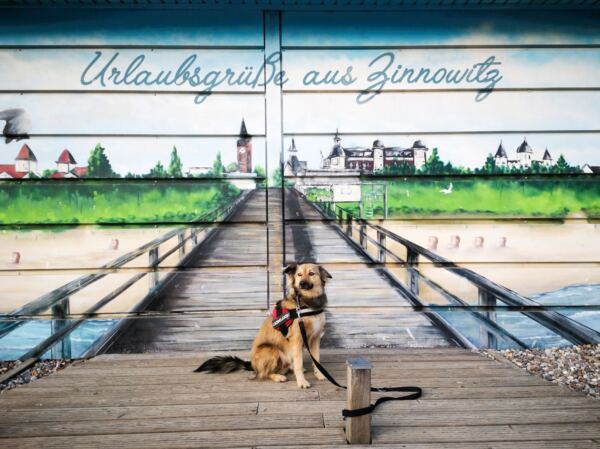 Von der Seebrücke ist man schnell in der Innenstadt von Zinnowitz und auch am Hundestrand des Orts. Der ist supergepflegt, von Wald gesäumt und bietet in der Badesaison einen Strandkorbverleih und einen Imbiss.