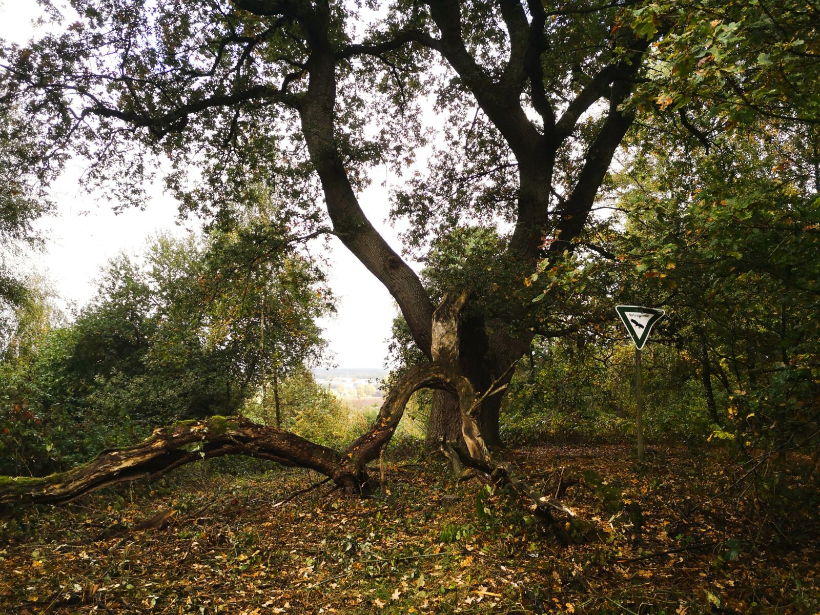Nach einiger Zeit müssen wir die Straße „Zum Lünsberg“ überqueren. Danach führt uns der Weg in weitem Bogen um die Naturerbefläche. Dahinter bringt uns ein Abstecher zum Gipfel auf dem Fliegerberg – unbedingt mitnehmen, auch wenn’s ein Umweg ist. Der Blick von oben ist wirklich schön.