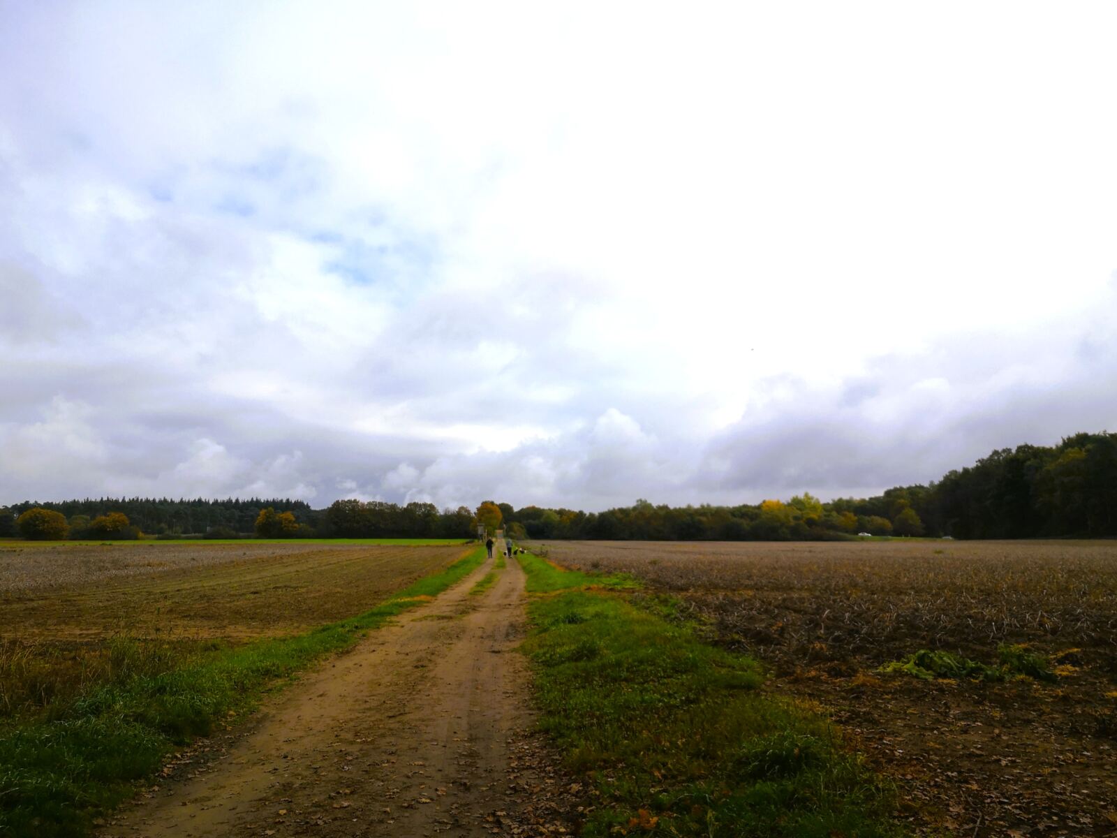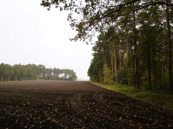 Weiter geht es durch den Wald, dann erneut über die Straße „Zum Lünsberg“, der wir einige Meter – auf einem breiten Bürgersteig – folgen müssen. Über eine breite Sandstraße laufen wir weiter am Waldrand entlang, wieder hinein in dichteren Wald und zurück zu unserem Ausgangspunkt, dem Wanderparkplatz am Tannenbültenberg.