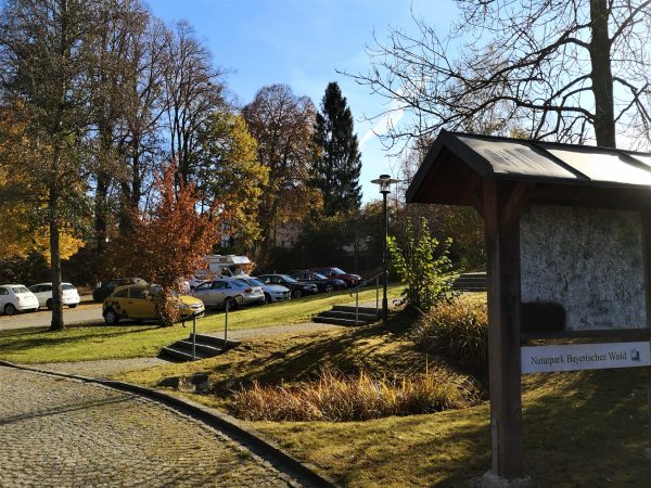 Ausgangspunkt unserer Rundtour ist der Wanderparkplatz P1 an der Bierfeldstraße. Von dort aus laufen wir zunächst am Stadtrand entlang, über die Kreuzstraße hinauf zum Kreiskrankenhaus. An der Siedlung „Am weißen Kreuz“ wechseln wir auf den Wiesenpfad Richtung Wacht. Toller Blick auf die Quarzfelsen des Großen Pfahls. Wir laufen den Hang hinab, überqeren den Riedbach über eine Brücke, biegen dahinter rechts ab auf den sandgebundenen Weg für Radler und Fußgänger, Über eine Brücke erreichen wir den Bichlweg. An der Straßenkreuzung wechseln wir hangaufwärts auf die Bachhöhe und biegen bei nächster Gelegenheit rechts ab. Wir stoßen wieder auf einen sandgebundenen Rad-und Fußweg, biegen links ab und folgen ihm weiter geradeaus, bald durch lichten Wald. Hier taucht auch wieder die Wegmarkierung 1 auf. Daran orientieren wir uns bis kurz vor Ende der gesamten Tour.