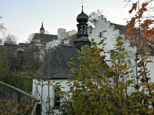 Hinter der Rugenmühle müssen wir ein kurzes Stück bis zur Brücke über den Schwarzen Regen auf der Straße laufen. Hinter der Brücke biegen wir links ab, wieder auf einen kombinierten Rad- und Fußweg. Er bringt uns bis zur Spitalkirche nach Viechtach. Hier verlassen wir den Wanderweg Nr. 1, biegen links ab und erreichen über die Himmelstiege das Café Venus und den Stadtplatz. Von dort aus sind es nur noch wenige Meter zum Ausgangspunkt.