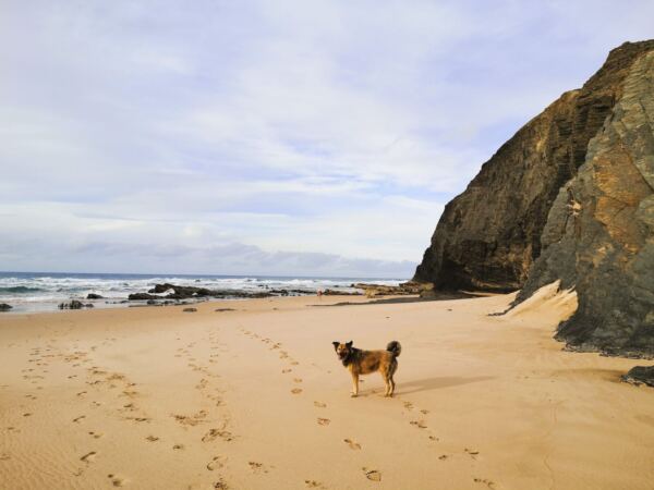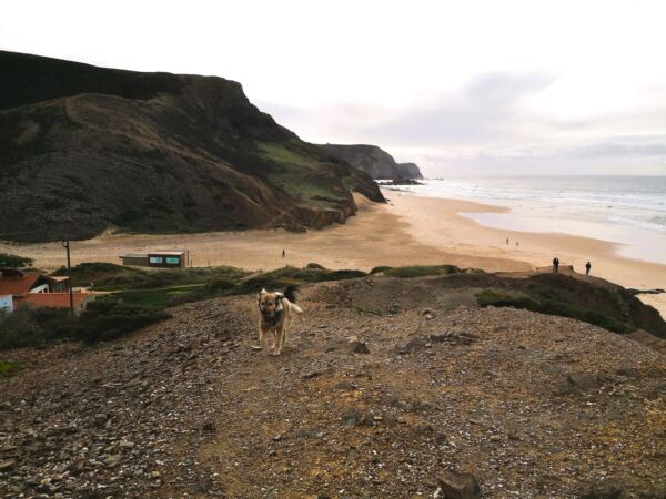 Wer jetzt noch Lust auf Kaffee und ein wenig Kultur hat, kann das nahe Vila do Bispo besuchen. Das sehr entspannte Städtchen im Naturpark Costa Vicentina gilt als guter Ausgangort für Wanderungen an der spektakulären Küste. Es zieht vor allem Surfer*innen und Naturfans an – auch und gerade solche mit Hunden.