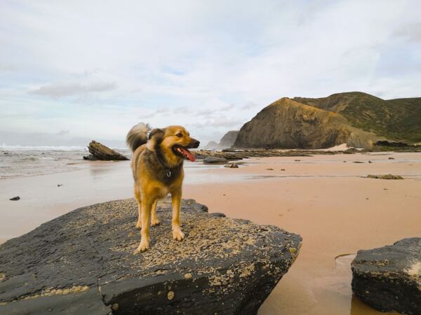 Unsere Hunde und wir lieben Steilküsten. Wem es genauso geht, ist mit seinem Vierbeiner in der Umgebung der Praia do Cordoama an der Algarve goldrichtig. Hier, an der Costa Vicentina, erheben sich die Felsen bis zu 150 Meter über den Atlantik. Der Planalto Vicentino – eine Hochebene, die sich entlang der Südwestküste Portugals erstreckt – fällt hier besonders steil ab. Atemberaubend! 🤩🐾 🏞️