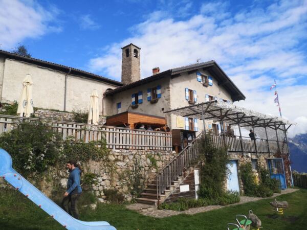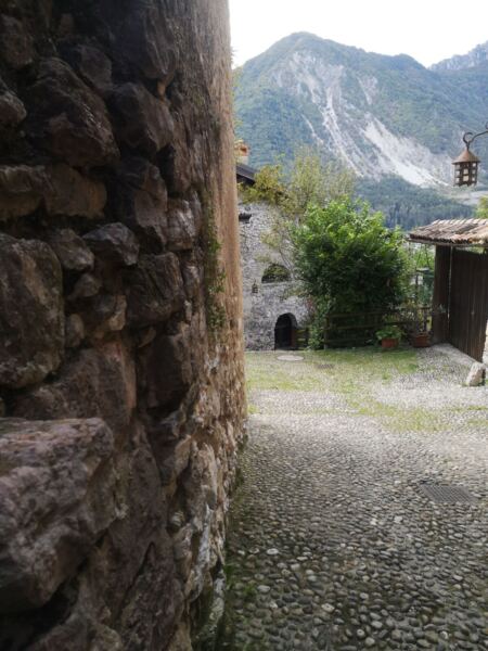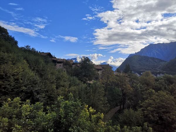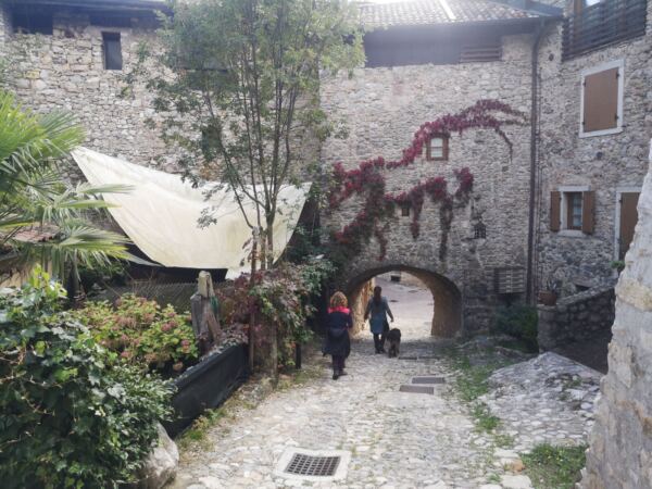 Nach einem Radler mit Traumblick auf den See machen wir uns auf den Rückweg. Der Weg bergab ist schmal und sehr geröllig. Jetzt nehmen wir auch Canale mit, ein zauberhaftes mittelalterliches Dorf.