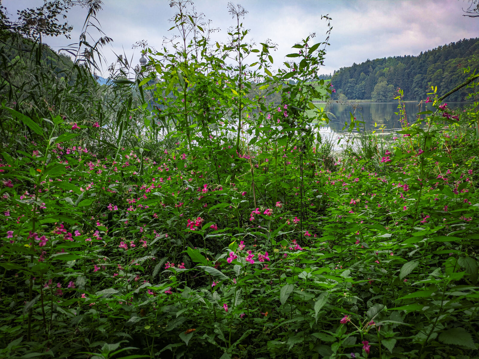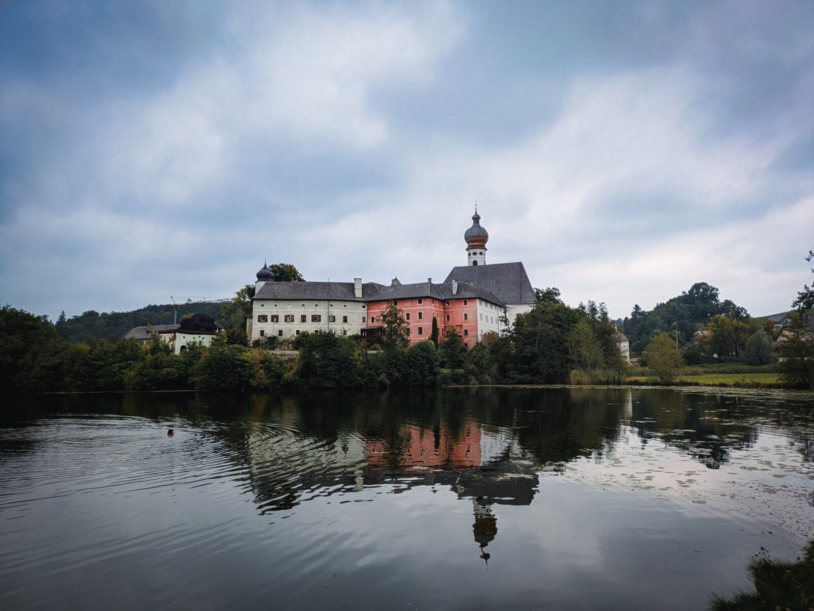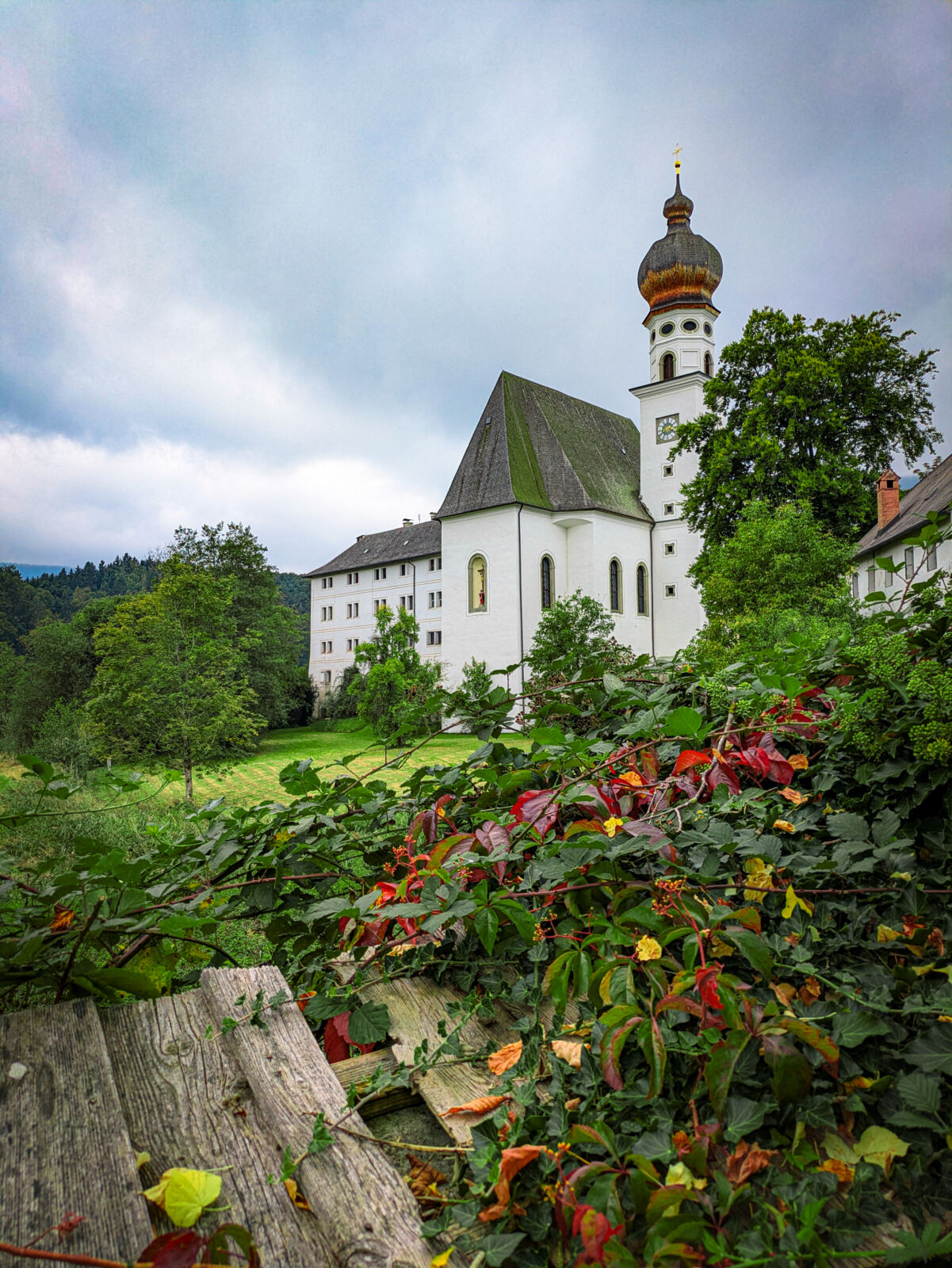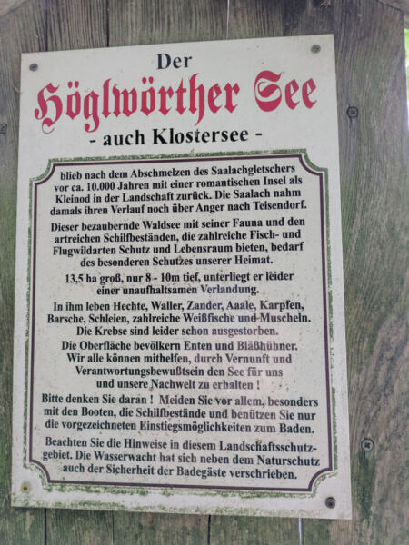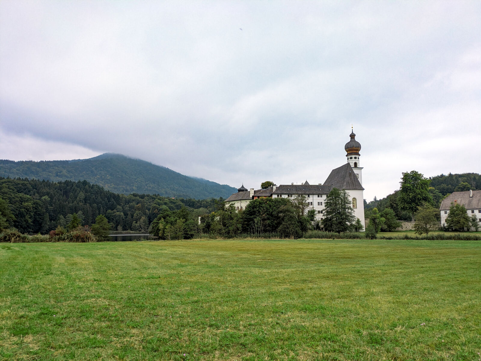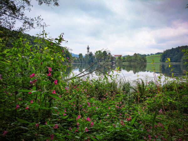 Unten am See liegt das burgähnliche Kloster Höglwörth. Ursprünglich lag es wohl mal auf einer Insel, der See verlandete aber mit der Zeit (und tut das noch immer). Deswegen liegt die Anlage heute auf einer Halbinsel. Das Kloster wird bereits seit über 200 Jahren nicht mehr von Mönchen bewohnt und befindet sich seitdem in Privatbesitz. Gegenüber des Eingangs liegt der Biergarten des Klosterwirts. Perfekt für eine Einkehr vor oder nach der Seeumrundung.