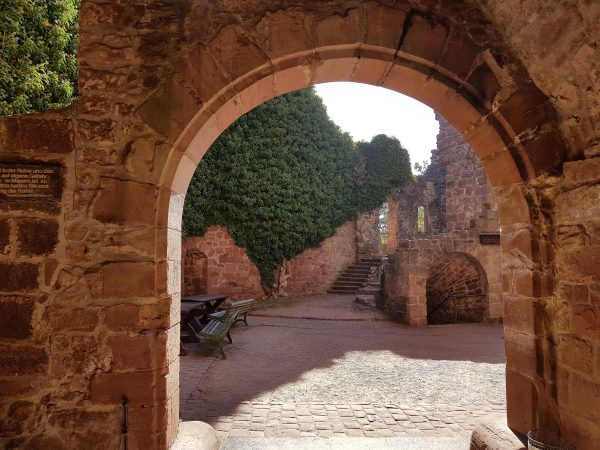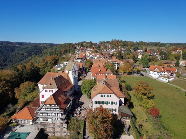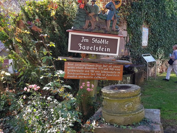 Es geht an den Aufstieg nach Zavelstein: Vorbei an der Dreifaltigkeitskirche führt die Tour über Burg- und Uhlandstraße zum Fünf-Minuten-Wegle, das nun, tatsächlich als „Wegle“ (und später als Krokusweg) hinauf zur Burgruine Zavelstein führt. Die Besteigung ist schon alleine wegen der tollen Aussicht Pflicht. Danach geht es übers Kopfsteinpflaster vorbei an St. Georg-Kirche und sehenswerten Häusern durch den Altortsteil von Zavelstein.