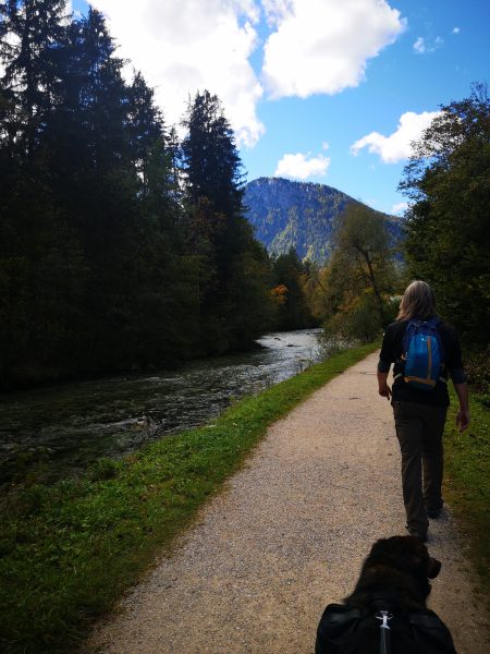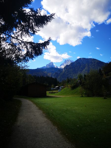 Wir starten in Berchtesgaden auf dem Parkplatz gegenüber der Tourist Info, wechseln die Flusseite und nehmen den Achenweg nach Süden. Dieser bringt uns entlang der Könisseer Ache zum Königssee. Nachdem man hier auch außerhalb der Saison selten alleine ist, wechseln wir immer wieder auf kleine Pfade, die parallel zum Hauptweg laufen.