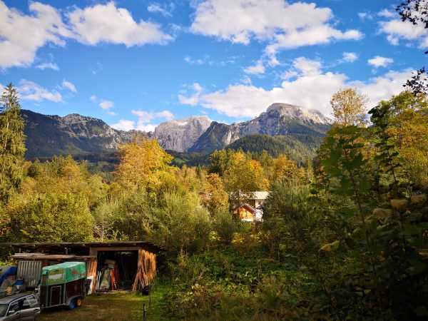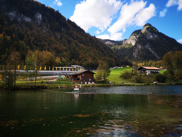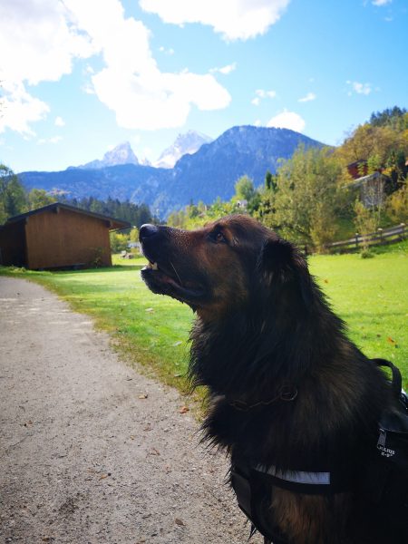 Schließlich erreichen wir den von mächtigen Felsen umgebenen Königssee. Das an seinen Ufern auch jetzt, nach der Saison, noch einiges los ist, ist verständlich: Es ist auch wirklich wunderschön hier. Um den See zu wandern ist nicht möglich, dafür fallen die Berge an seinen Ufern zu steil ab. Wer die anderen Orte am See besuchen möchte, ist dafür auf das Schiff angewiesen. Mit Maulkorb dürfen auch Hunde an Bord. Wir verzichten darauf und machen stattdessen einen Abstecher zum Café Malerwinkel um den Blick auf den See von oben zu genießen. Dann geht’s zurück zum Ausgangspunkt.