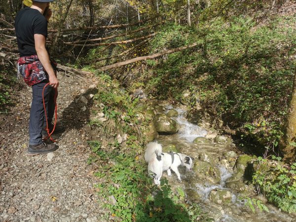 Auf der Strecke können die Hunde immer wieder in kleinere Bäche oder einen Fluss und sich abkühlen.