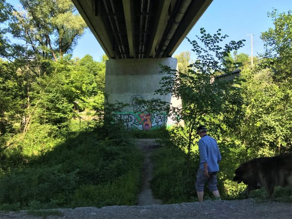Hier geht's lang: Der Trampelpfad unter der Leinthaler Brücke stößt direkt auf den Uferweg, ist aber in keiner Karte verzeichnet.