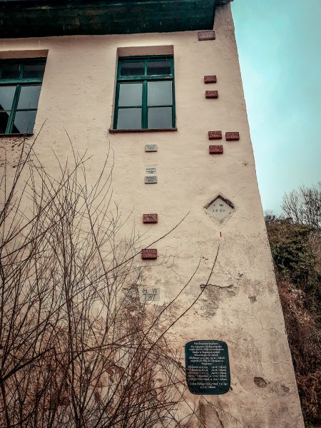 An dieser Wand sind die Pegelstände vergangener Hochwasser markiert