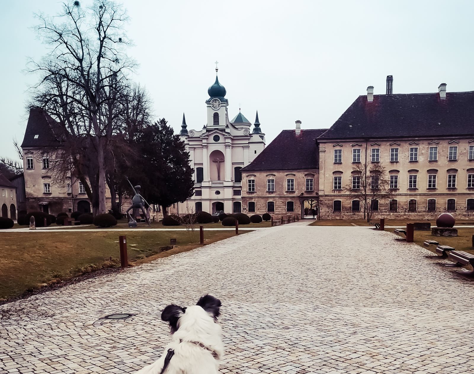 Wir erreichen das Kloster Raitenhaslach, das 1146 von den Zisterziensern gegründet wurde und schauen uns ein bisschen um. Der Biergarten hier soll auch schön und gemütlich sein, wir hatten leider noch keine Gelegenheit uns selbst davon zu überzeugen, werden das aber hoffentlich im Sommer nachholen.