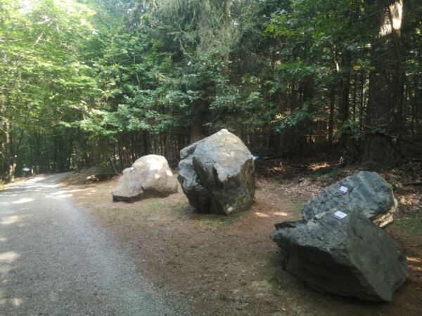 Vom Parkplatz Hammermühle folgen wir der Beschilderung des Goldsteigs (goldenes S auf weißem Grund) durch den Canyon des Waldnaabtals. Links uns rechts des Weges ragen mächtige Granitfelsen auf, sie tragen namen wie „Butterfass“ oder „Kammerwagen“.