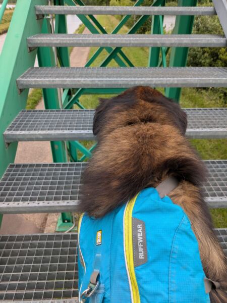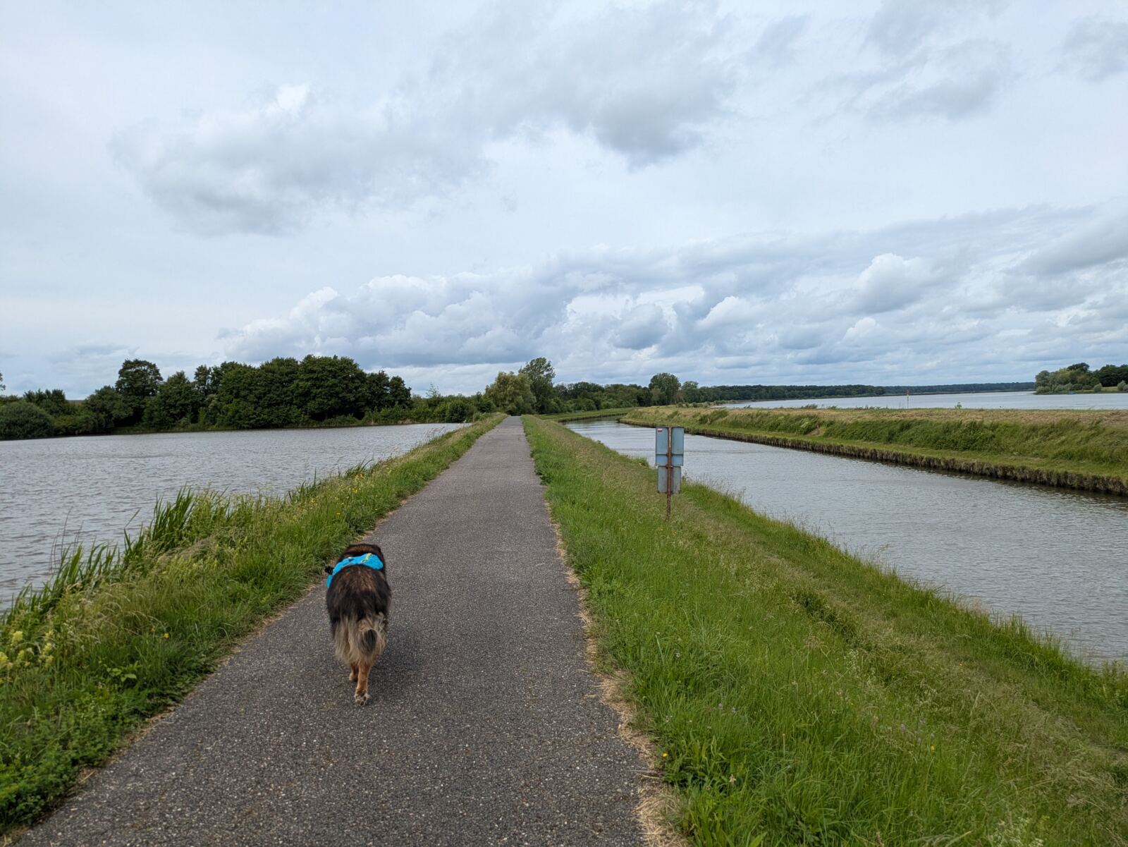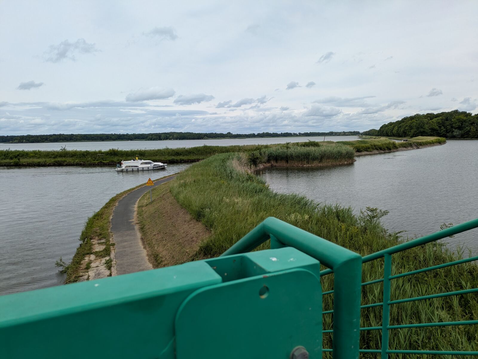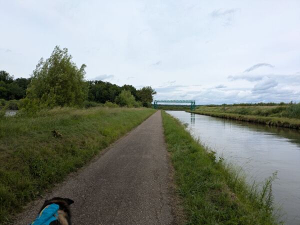 Hier sieht man schon die Gitterbrücke, die uns auf die andere Kanalseite führt