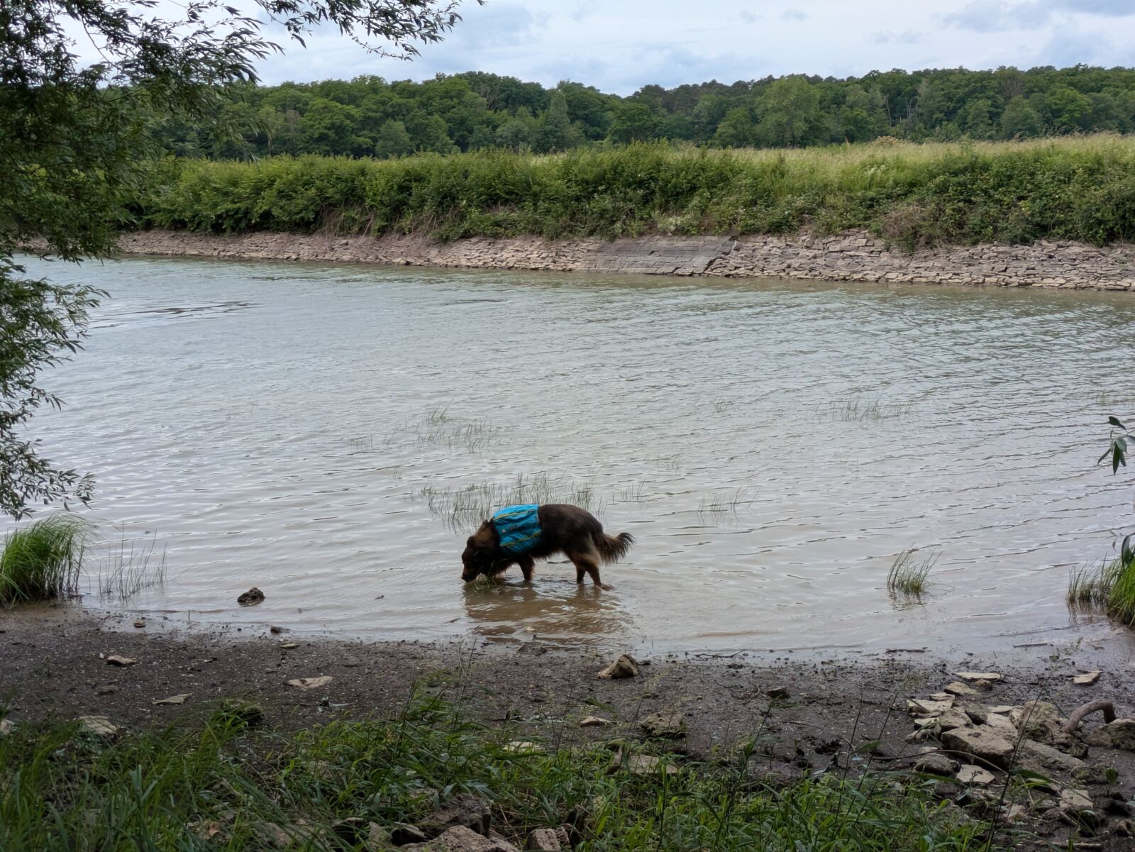 Schließlich verlassen wir den Wald, gehen am Campingplatz vorbei und dann zurück zum Ausgangspunkt. An diesem Abschnitt kommen wir an einem Restaurant vorbei. Es hat nur zum Mittagstisch und Abends geöffnet, somit laufen wir daran vorbei und holen die Kaffeepause später nach.