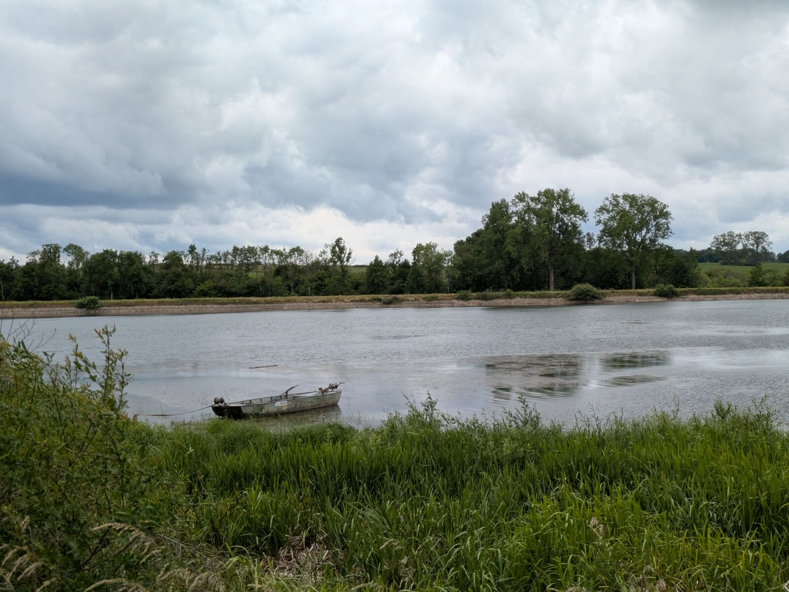 Die Tour beginnt in Gondrexange, einem kleinen Ort im Département Moselle. Vom Ortsrand aus führt der Weg zunächst in westlicher Richtung direkt am Rhein-Marne-Kanal entlang. Dann wechseln wir über eine Gitterbrücke auf die andere Seite des Kanals und folgen nun dem Ufer des Petit Étang. Auch wenn wir nie weit weg von seinem Ufer sind, ist dieses so dicht bewachsen, dass wir das Wasser nur selten sehen. Dafür wird unser Spaziergang von einem Vogelkonzert begleitet. 🙂