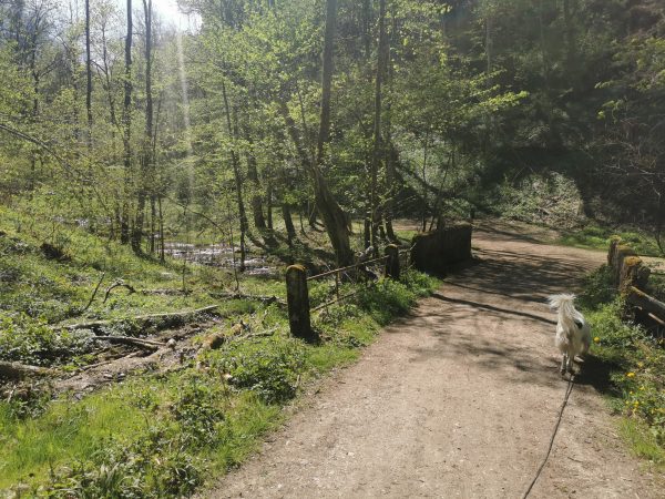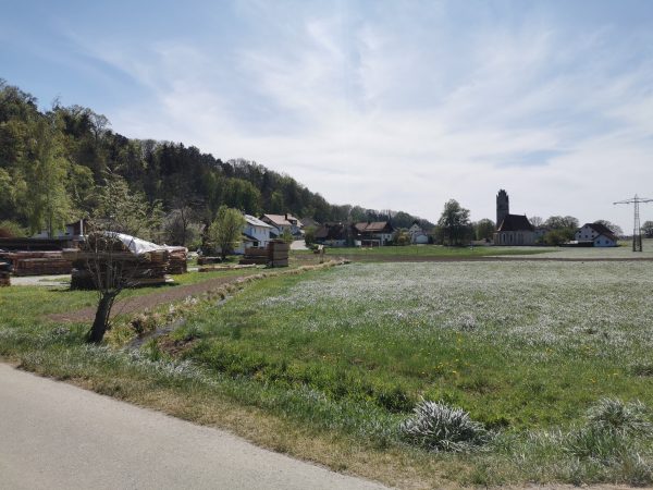 Wir starten in dem kleinen und hübschen Örtchen Ensdorf. Zu Beginn der Tour geht es ein kurzes Stück auf einem Gehweg neben einer Straße entlang, dann gehen wir links weg auf einer wnig befahrenen Straße an Malseneck vorbei.