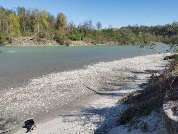 Nach dem Schloss geht es rechts weg und wir stoßen auf den wunderschön gelegenen und idyllisch plätschernden Guttenberger Bach, dem wir jetzt ein Stück folgen. Unterhalb des Schloss Guttenburg wechseln wir auf den Innleitenweg, der uns zurück nach Ensdorf bringt. Bevor wir zum Parkplatz zurückkehren, machen wir aber noch einen Abstecher zu einem wunderschönen Innstrand, wo das Wasser sehr flach ist. Wer nach der Pause hier noch einkehren will, kann das beim Schmiedwirt in Ensdorf tun.