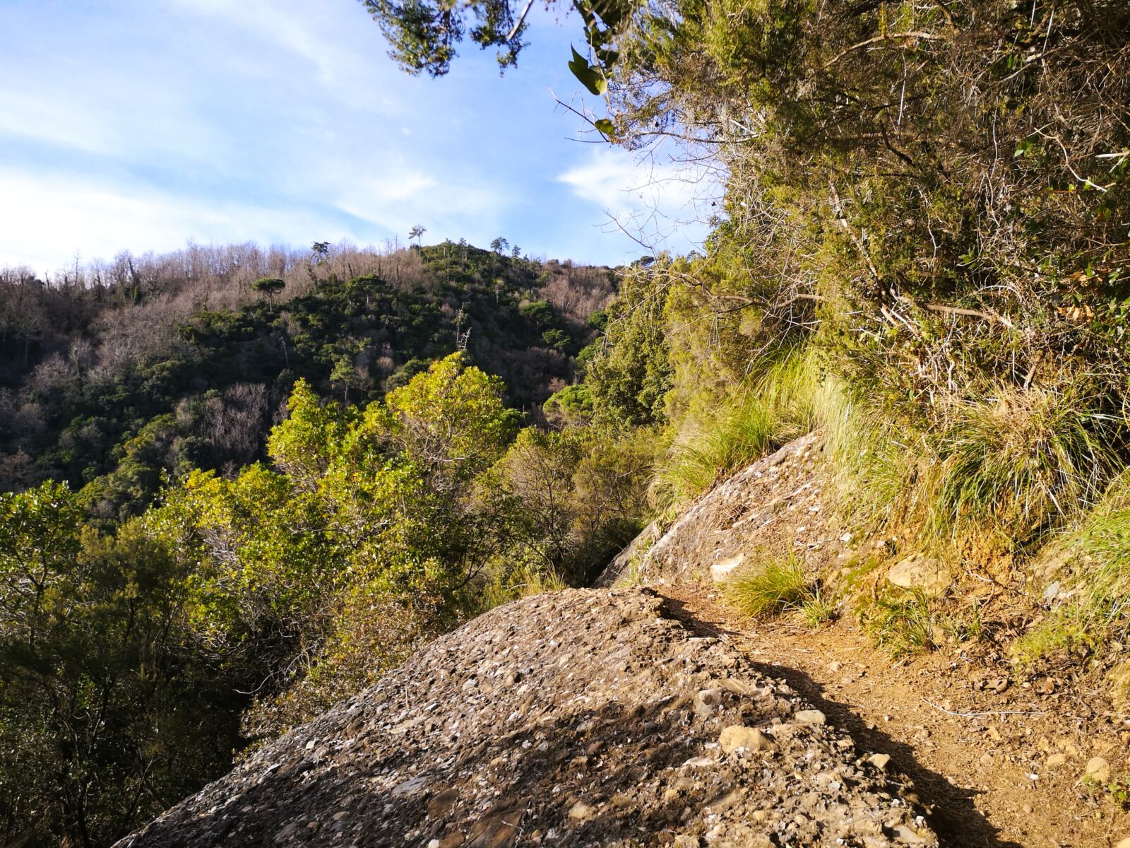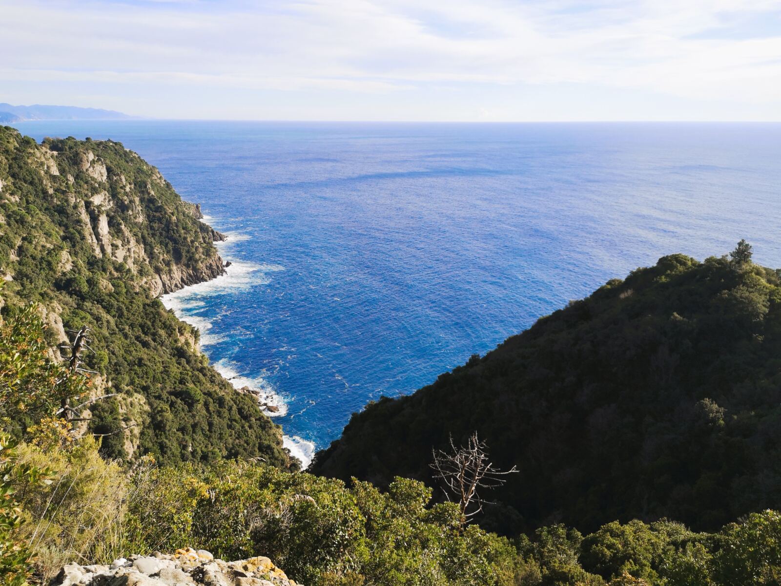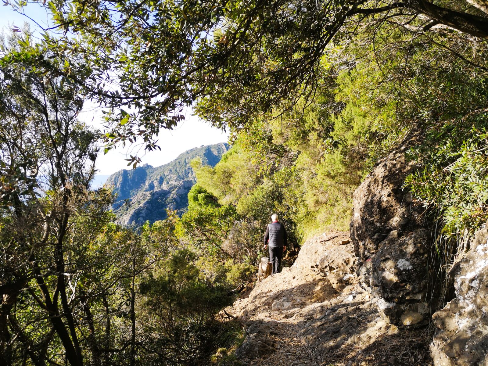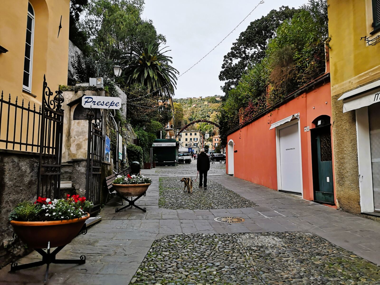 🐕‍🦺In Portofino und Umgebung gilt Leinenpflicht für Hunde. Auf dem schmalen Wanderweg haben wir unseren Amos, der nicht jagt, frei zwischen uns laufen lassen und dann angeleint, wenn wir auf andere Menschen trafen. Im Winter geht das gut, weil dann nur wenige Leute unterwegs sind, unter der Woche nicht mal mehr die Einheimischen.  In der Hauptsaison soll der Wanderweg aber ziemlich überlaufen sein – und der Vierbeiner sollte an die Leine.