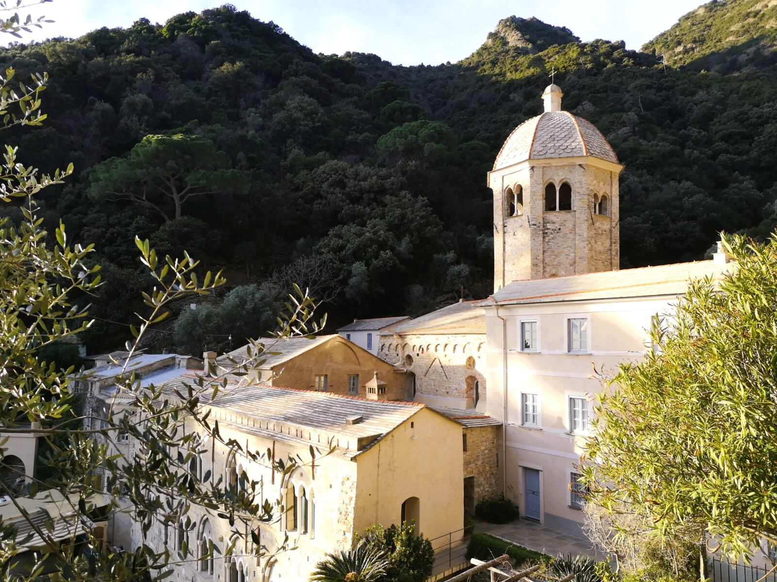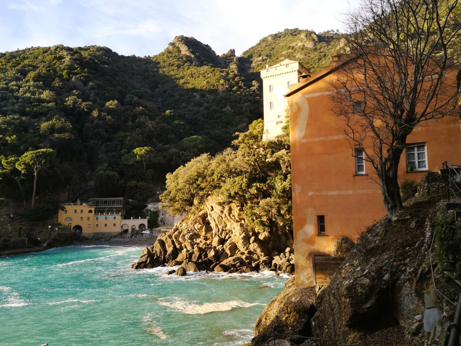 Der Wanderweg führt uns durch abwechslungsreichen Laubwald. In Serpentinen geht es schließlich flott nach unten. Wir passieren den Hubschrauberlandeplatz von Fruttuoso. Hinter dem Landeplatz steigen wir durch Wald bergab und erreichen bald die ersten Häuser dieses fast magischen Orts.