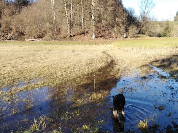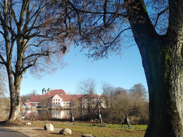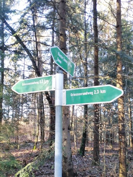 Wir starten am Parkplatz des Seeoner Klosters und biegen auf dem Seeweg gleich nach links ab in Richtung Griessee. Der Weg ist sehr gut als „Griesseerunde“ ausgeschildert. Jetzt im Winter ist das Seebad am Griessee geschlossen, aber alle Bänke stehen noch und laden zu einer Pause ein. Im Seebad herrscht Hundeverbot, aber jetzt im Winter bei strahlendem Sonnenschein nehmen einige Hunde ein erfrischendes Bad. Auf dem Rückweg nehmen wir noch einen Abstecher zum Weinbergblick (ebenfalls sehr gut ausgeschildert) und dieser lohnt sich, denn wir haben einen herrlichen Ausblick auf den Klostersee und die dahinter liegende Alpenkette.