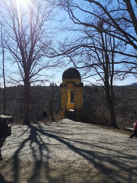 Dann machen wir uns an der St. Niklas Kirche vorbei auf den Rückweg. Dieses Mal nehmen wir den höher gelegenen Parallelweg, um nicht die gleiche Strecke zurücklaufen zu müssen.