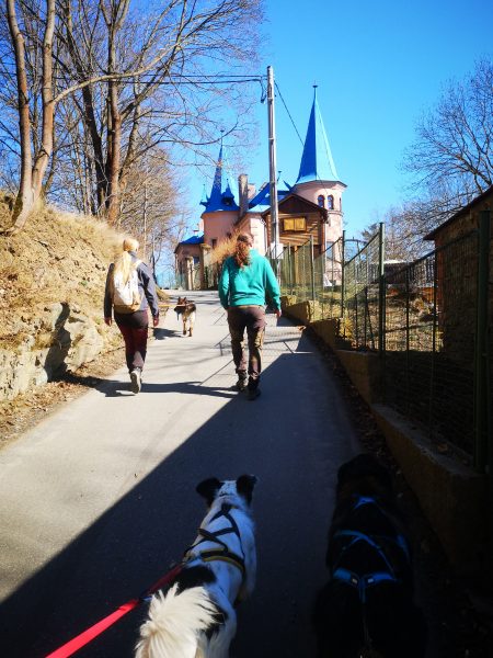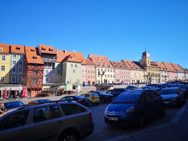 Wir drehen eine kleine Runde in der Stadt, als erstes an der Burg vorbei (reingehen geht mit Hunden leider nicht), dann geht’s weiter zum wirklich malerischen Stadtplatz. Wunderschöne alte Fachwerkhäuser und ein hübsches barockes Rathaus. Am Stöckl kehren wir ein, auch mit unseren drei großen Hunden kein Problem.