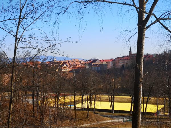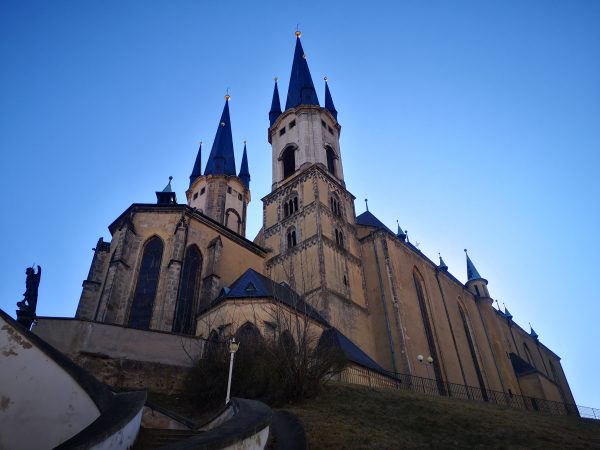 Ein Stück weiter entlang des Weges zeigt auch Cheb zum ersten Mal: in bester Bilderbuchkulisse erheben sich die alten Türme über den Fluss, dahinter strahlend blauer Himmel 🙂