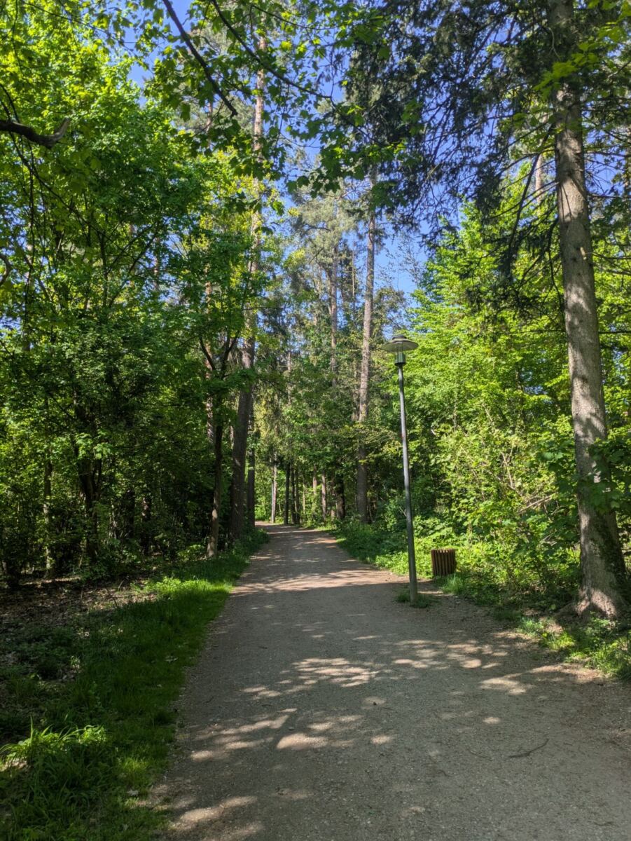 Tipp: Man läuft zwar zwischen Bäumen, die Straße ist aber nie weit. Deswegen gehen wir die Runde am liebsten außerhalb der Hauptverkehrszeiten. 🙂