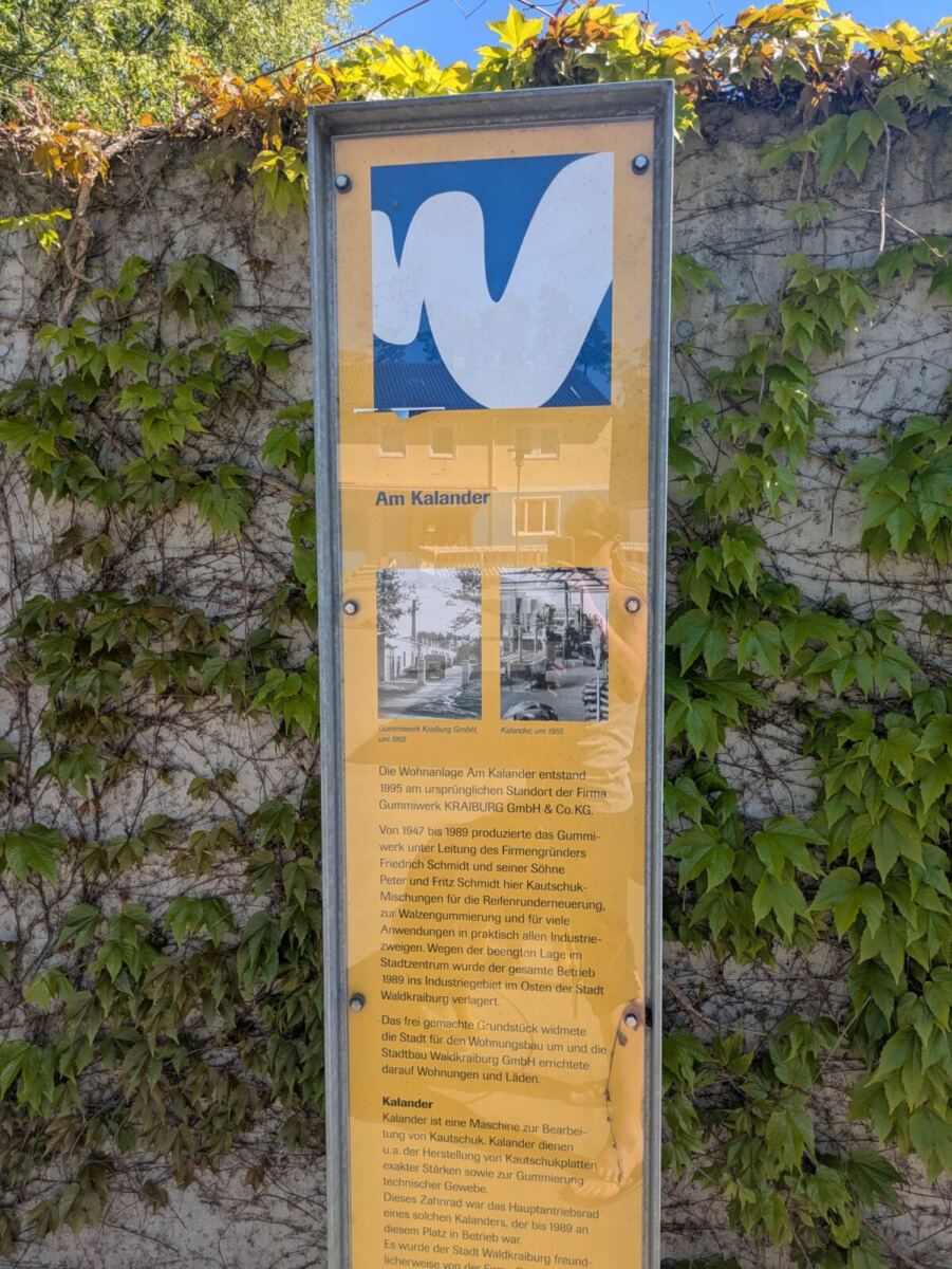 Wir starten am Friedhof an der Von-Der-Tann-Straße und biegen dort auf den Pfad durch den Grünen Ring ein. Dem Weg folgen wir ab jetzt, erst Richtung Süden, dann geht es in einem sanften Bogen ostwärts. Kurz bevor wir die Reichenberger Straße erreichen halten wir uns links, treten wir aus dem Wald und folgen ein paar Meter der haidaer Straße. Dann geht es direkt wieder links weg auf einen Pfad am Spielplatz entlang. Dann trifft der Weg auf die Graslitzer Straße, dort geht es auf die andere Seite, nach links und ein paar Meter weiter wieder rechts weg, auf einen Trampelpfad. Eine Stele informiert hier, dass es sich bei dem Gebäude um die Wohnsiedlung „Am Kalander“ handelt, die auf dem ursprünglichen Standort des Gummiwerks entstanden ist. Ihren Namen hat sie von einer Maschine zur Kautschukbearbeitung, die Kalander heißt und hier im Betrieb war. Als nächstes biegen wir in den Sparkassenpark ein und eine Ecke weiter in den Stadtpark. Über diesen kommen wir wieder auf den grünen Ring und damit zurück zum Ausgangspunkt.