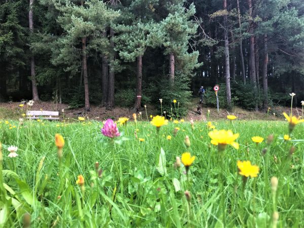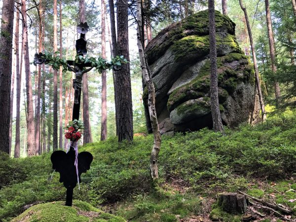 Typisch für die Wälder im Waldviertel: Felsbrocken, Heide, Kiefern und immer wieder ein Wegmarterl.