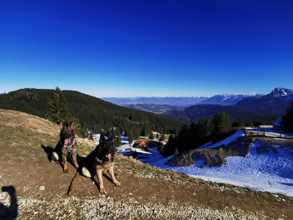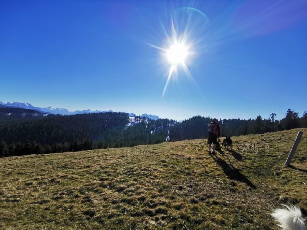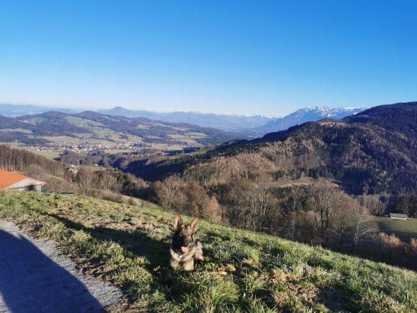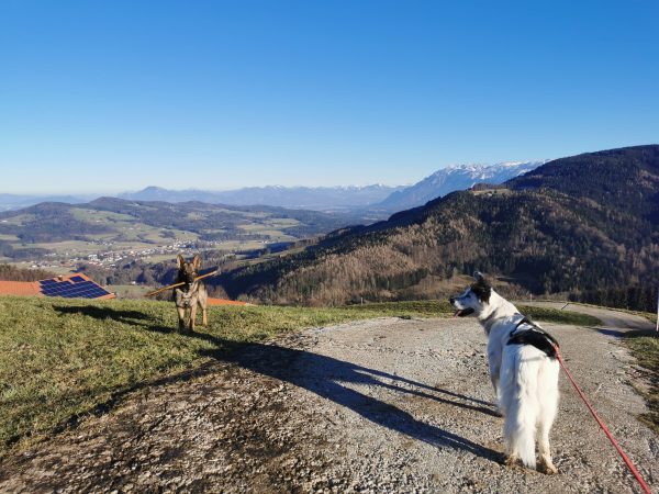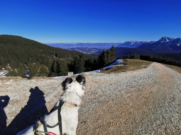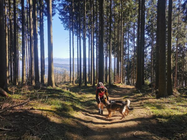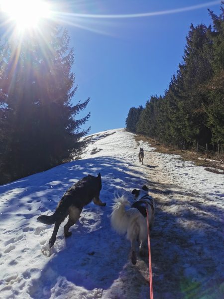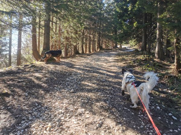 Leider haben wir beim Aufstieg über den Waldweg kein Wasser für die Hunde gesehen, beim Abstieg kamen wir dann an Bächen vorbei.