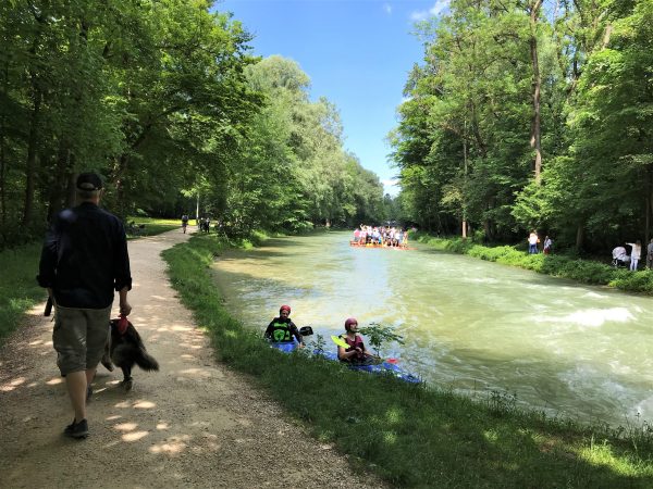 An sommerlichen Wochenenden kann man auf dieser Tour nicht nur Golfern, Surfern und Kanuten zusehen. Auch Flöße mit Blaskapellen, Bierfässern und sehr beschwingten Gruppen treiben auf dem Ländkanal an Spaziergängern vorbei, der Anlegestelle am Floßländle entgegen. Eine Wanderung zwischen Ruhe und Trubel, die es so wohl nur in München gibt – und die natürlich im Biergarten enden kann, zum Beispiel dem vom Gasthof Hinterbrühl. Die Runde um den Hinterbrühler See lassen wir aus. Hier sind Hunde nur an der kurzen Leine erlaubt.