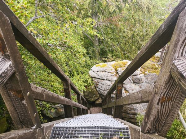 Auf dieser Treppe geht es zum höchsten Punkt des Rudolfsteins.