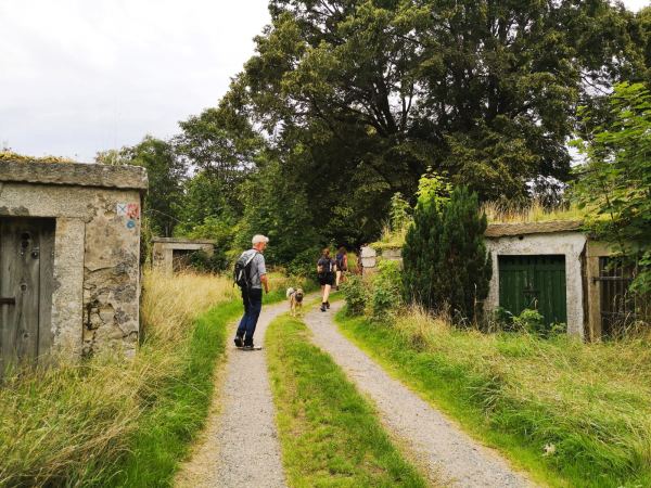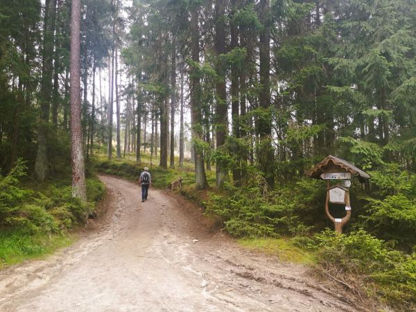 Startpunkt ist der Wanderparkplatz am Weißenstädter See. Hier kann man auch ein Wohnmobil problemlos abstellen. Auf dem geteerten Rundweg (Leinenpflicht!) laufen wir zunächst am See entlang Richtung Ortsmitte Weißenstadt. Dem Wegweiser mit der 3 auf gelbem Kreis folgend, biegen wir bald rechts ab und überqueren die Bayreuther Straße. Über das Sträßlein „Kellerhaus“ erreichen wir den Wanderweg, der vorbei an den Felsenkellern führt. Hier und da steht eine Tür offen und wir können einen Blick in einen der vielen Keller werfen, die nach und nach saniert werden. Der Weg mündet schließlich auf eine kaum befahrene Teerstraße, die uns am Wohngebiet Lederer vorbei hinauf in den Wald bringt. Wir biegen links ab, in den Wald hinein, wenig später rechts ab Richtung Rudolfstein.