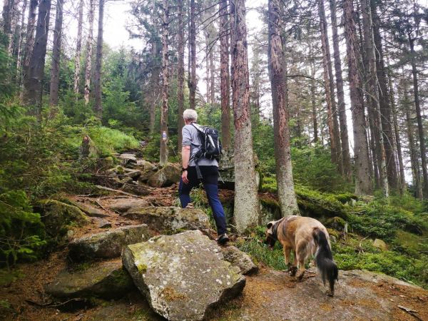 Die Magie des Fichtelgebirges liegt im Wald. Genauer gesagt: Sie steckt in den ungezählten Granitbrocken, die sich mal als Blockmeere in die Senken ergießen, mal als mächtige Türme in den Himmel wachsen. Diese Hunde-Runde führt uns zu zwei besonders imposanten Felsformationen: zum Rudolfstein und zu den Drei-Brüder-Felsen, die zu den 100 schönsten Geotopen in Bayern zählen. Auf der Strecke liegen noch eine Reihe weiterer Besonderheiten, darunter der knapp 50 ha große Weißenstädter See (Hundebaden am ausgewiesenen Hundestrand) und die vielen historischen Felsenkeller aus dem 18. Jahrhundert, in denen erst Kartoffeln und Rüben, später auch Bier und Eis gelagert wurden.