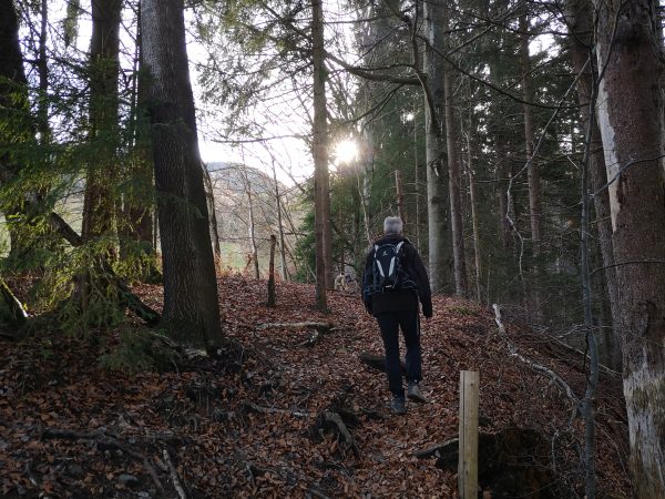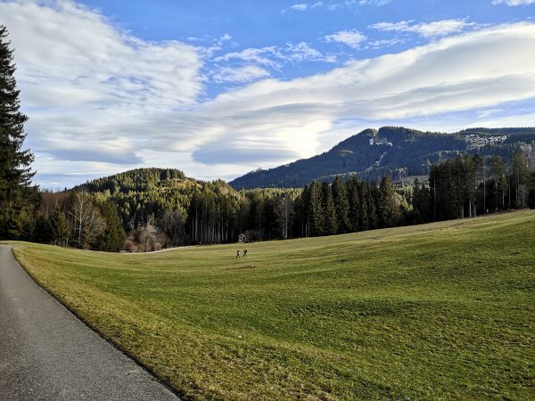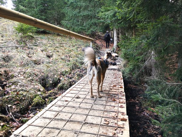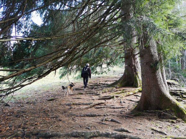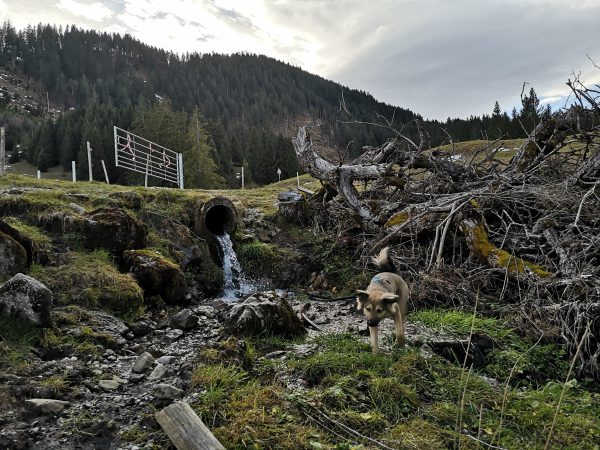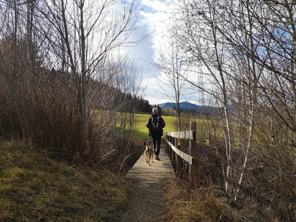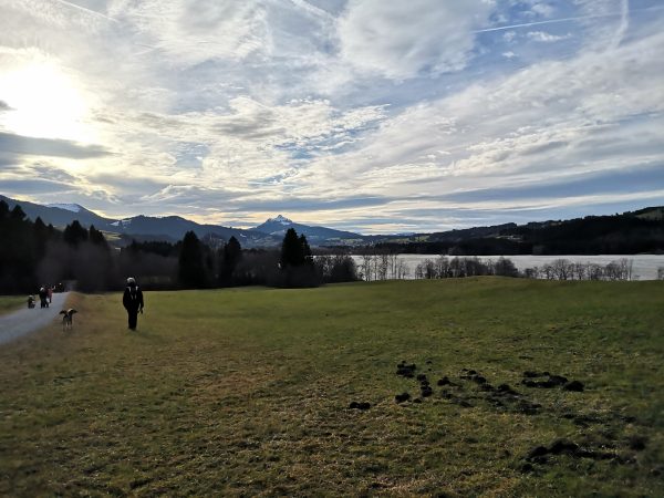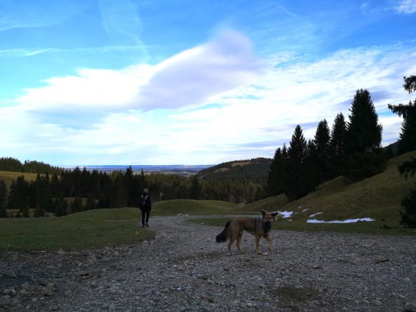 Unsere Runde zeigt den See von unten und von oben. Wir steigen hinauf zur Buronhütte über dem Grüntensee, beliebt wegen ihrer Aussicht und ihrer guten Küche. (Öffnungszeiten: www.buronhuette.de) Dann geht`s hinab zum See und am Ufer entlang. Unter Füßen und Pfoten: Wiesen- und Waldpfade, beim Abstieg dann meist geteerte bzw. leicht geschotterte Fahrwege. Mit Hund sind wir hier außerhalb der Ski- und Weidesaison am besten aufgehoben. Denn dann kann der Vierbeiner über weite Wiesen toben, ohne Kühen oder Skifahrern in die Quere zu kommen.
