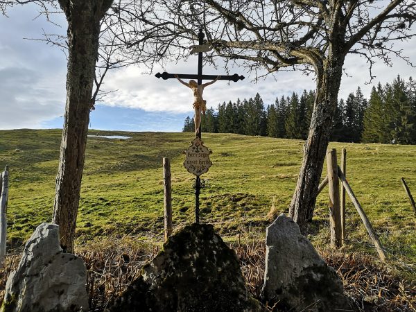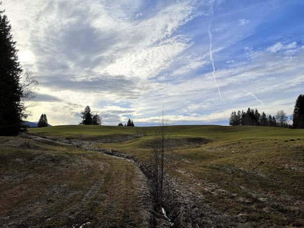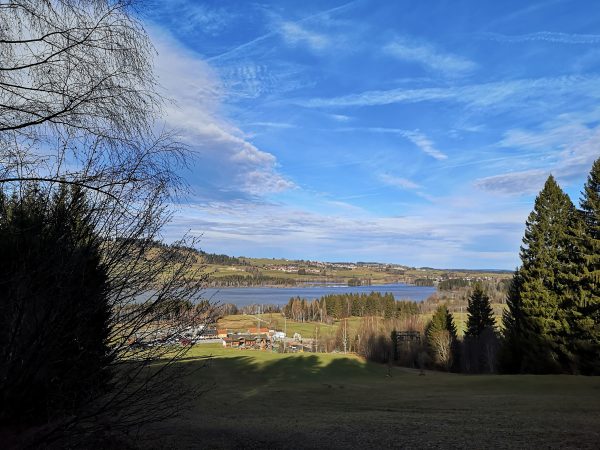 Ausgangspunkt der Tour ist der Park- und Wohnmobilstellplatz am Buron (Grüntenseestraße). Direkt gegenüber, auf der anderen Straßenseite, startet die Tour. Neben dem Skihang geht es recht knackig hinauf. Wir folgen dem schönen Wanderpfad erst links, dann rechts, dann wieder links des Bachs durch lichten Mischwald hinauf. Fast vom Start an genießen wir Tiefblicke über den See. Wo der Pfad auf die Zufahrststraße trifft, biegen wir links ab zur Buronhütte. Ab der Hütte folgen wir dem Weg einfach geradeaus weiter, um eine Kurve in den Wald hinein und wieder hinaus. An der nächsten Kreuzung geht es rechts ab und hinunter auf einem Teersträßchen zwischen weiten Weiden. Wo die kleine Straße rechts am Waldrand entlang führt, biegen wir geradeaus auf den Wanderpfad in den Wald ein, der uns direkt hinab ins Tal bringt. Wir queren die Grüntenseestraße, laufen geradeaus, dann rechts ins Moor hinein, biegen schließlich links ab und erreichen den See. Mit schönem Weitblick auf den Grünten spazieren wir am See zurück zum Ausgangspunkt.