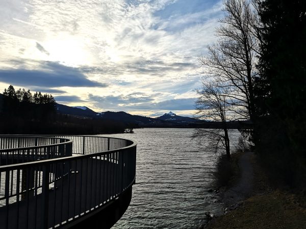 Nahe Nesselwang, eingebettet in eine Auen- und Moorlandschaft, liegt der Grüntensee im Oberallgäu. Der Stausee schützt die umliegenden Orte vor Hochwasser, liefert Strom – und steht im Sommer für entspanntes Badevergnügen. In den kalten Jahreszeiten spazieren auch und gerade Hundebesitzer entlang des Ufers und genießen den Blick auf den „Wächter des Allgäus“. Der gut 1.7300 m hohe Grünten gab dem See seinen Namen.