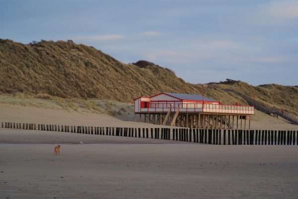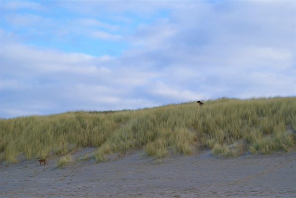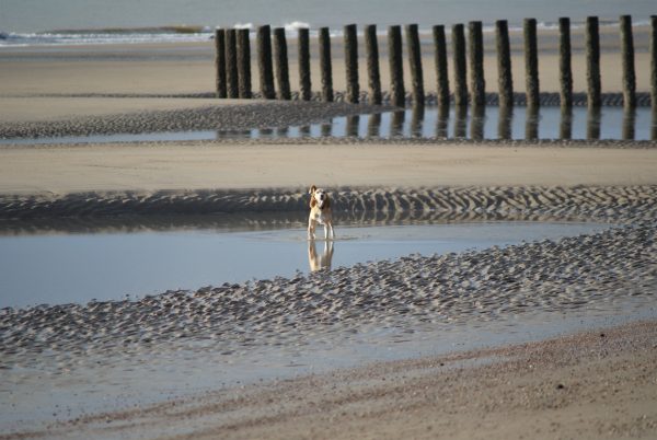 An der Spitze der Insel Schouwen-Duiveland liegt das Dorf Westenschouwen mit seinen breiten Stränden und dem Oosterschelde-Sturmflutwehr. Das monumentale Bauwerk, das die Provinz Zeeland vor Hochwasser schützt, wird gerne 8. Weltwunder genannt. Auch hinter den Dünen erwartet uns Wunderbares – im Staatsforst (Boswachterij) Westerschouwen, dem größte Wald Zeelands. Das Naturschutzgebiet mit seinen vielen Wanderwegen ist ein Paradies für Vögel und Rehwild und bietet sogar eine Freilauffläche für Hunde. Der Strand gehört – wie fast überall in holländischen Badeorten – von 15. Mai bis 15.September den Badegästen. In dieser Zeit dürfen Hunde zwischen 10 und 19 Uhr nur angeleint an den Strand. In der Nebensaison ist es hier aber ohnehin viel schöner. Unsere kleine Tour führt am Strand entlang, wo sich unsere Hunde müde toben, mit einem kurzen Abstecher im Boswachterij. Achtung, nicht irritieren lassen: Die Strecke am Strand entlang lässt sich auf der Karte nicht darstellen, da am Strand kein offizieller Weg verläuft. Einfach parallel zur unten markierten Route am Strand entlang gehen und durch den Wald zurück.