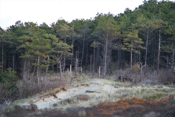 Direkt hinter den Dünen von Westenschouwen liegt der Boswachterij, die größtenteils frei zugänglich ist. Die Freilauffläche für Hunde - recht klein, aber immerhin - liegt auf dem Streifen hinter dem Campingplatz zwischen dem Waldrand und dem Reitweg am Adriaan van der Weijdeweg.