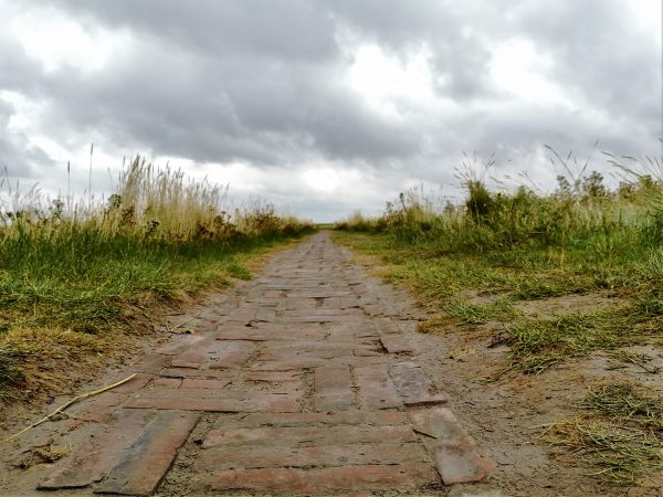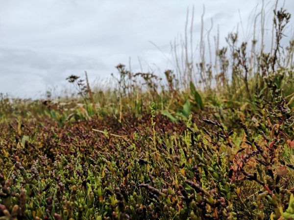 Der historische Stockenstieg führt durch die Salzwiesen.
